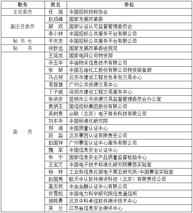 电子招标投标系统检测认证技术委员会成员名单
