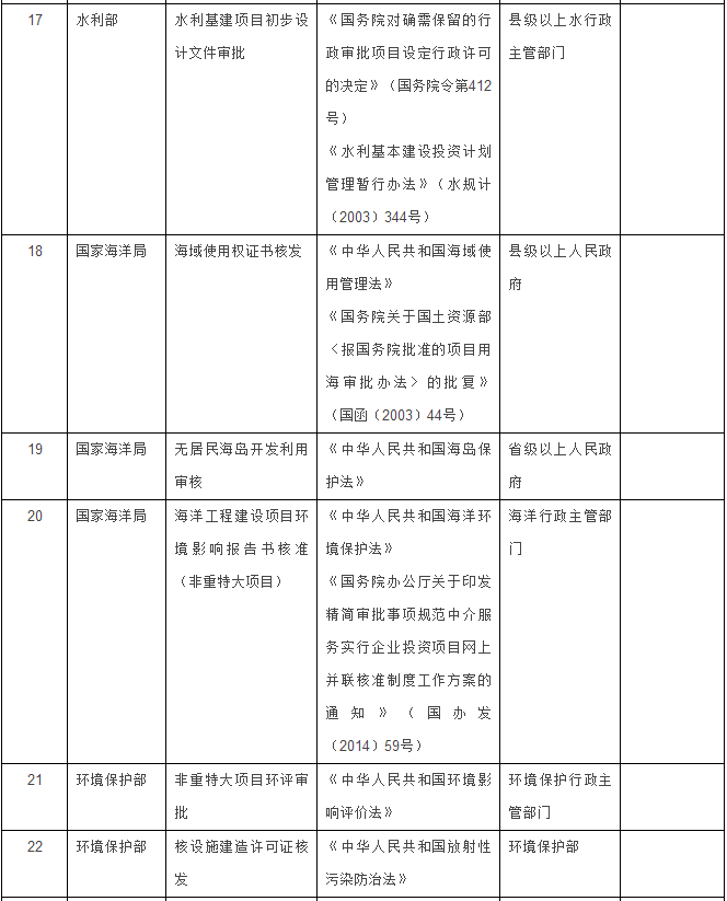 海洋部门3项:海域使用权证书核发、无居民海岛开发利用审核、海洋工程建设项目环境影响报告书核准(非重特大项目)。