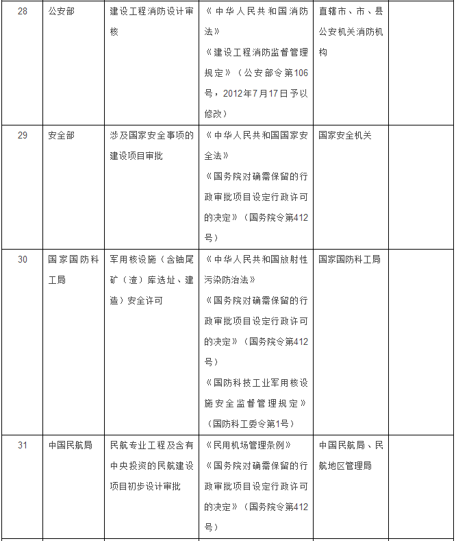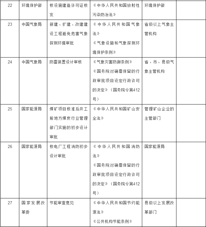 能源部门2项:煤矿项目核准后开工前地方煤炭行业管理部门实施的初步设计审批、核电厂工程消防初步设计审批。