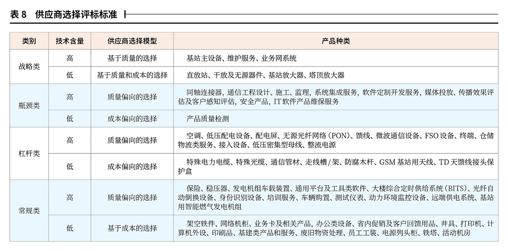 本文在借鉴国外经验的基础上,结合中国移动的实际情况,基于“卡拉杰克矩阵”进行采购品类定位,构建了全生命周期品类管理模型,制定了16种采购方案以及64种采购方法,建立了4类供应商选择评标标准,为提升集中采购质量、打造高质量的数字化供应链管理体系奠定了基础。